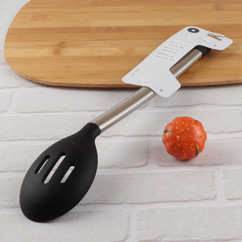 Factory supply silicone nylon slotted spoon with stainless steel handle