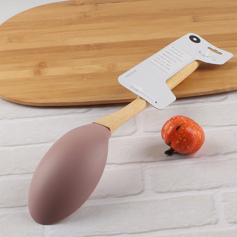 Factory supply silicone nylon kitchen cooking spoon with wooden handle