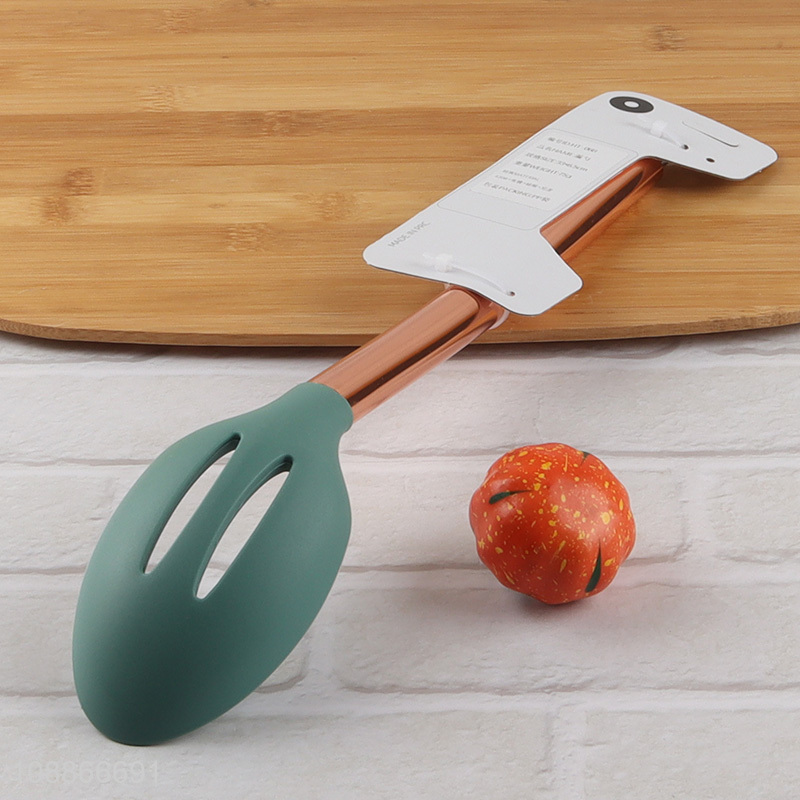 Wholesale silicone nylon slotted ladle with electroplated stainless steel handle