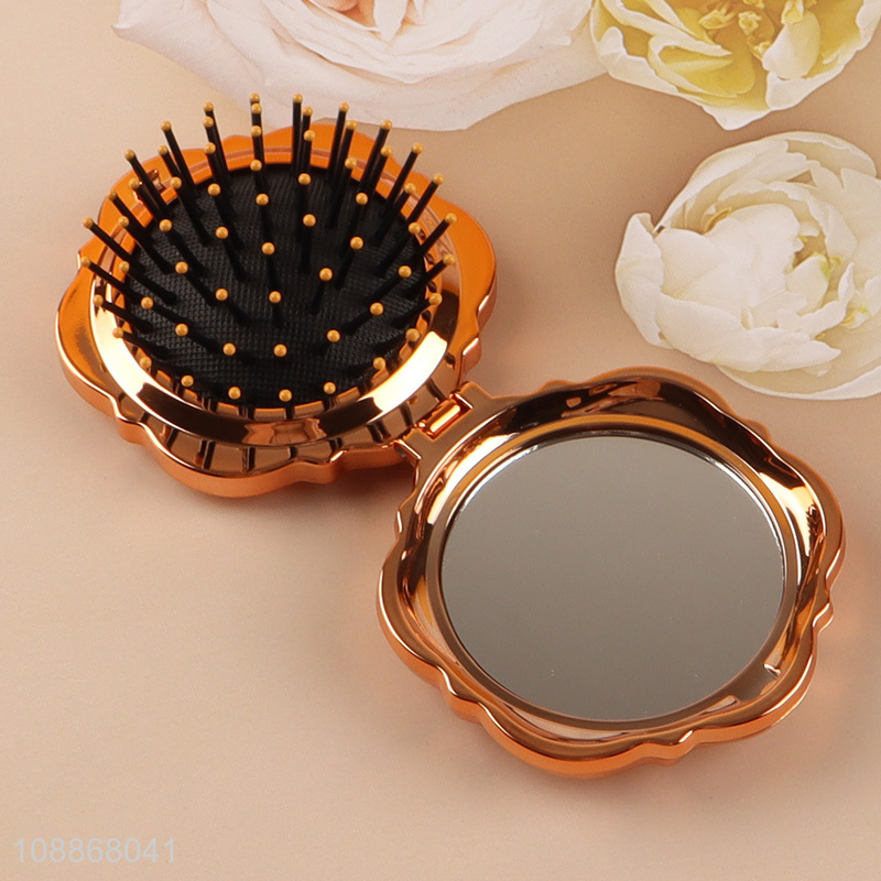 New product rose shape pocket mirror travel mirror brush for women