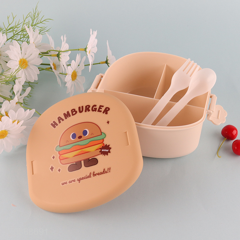 China supplier hamburger shape lunch box with spoon fork