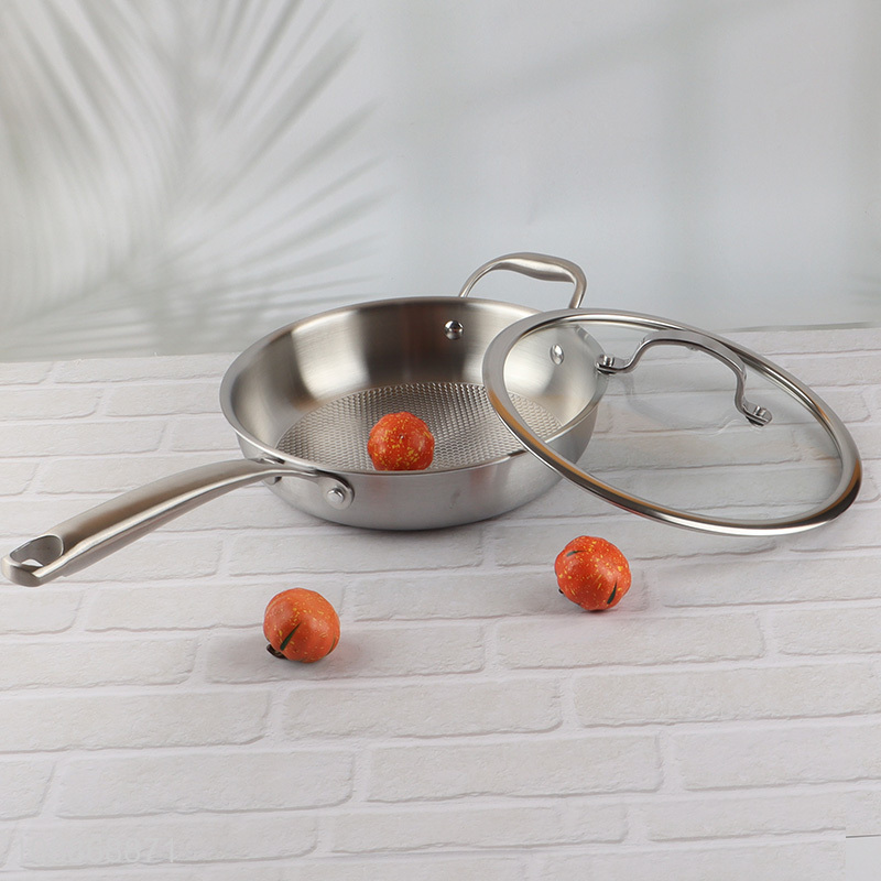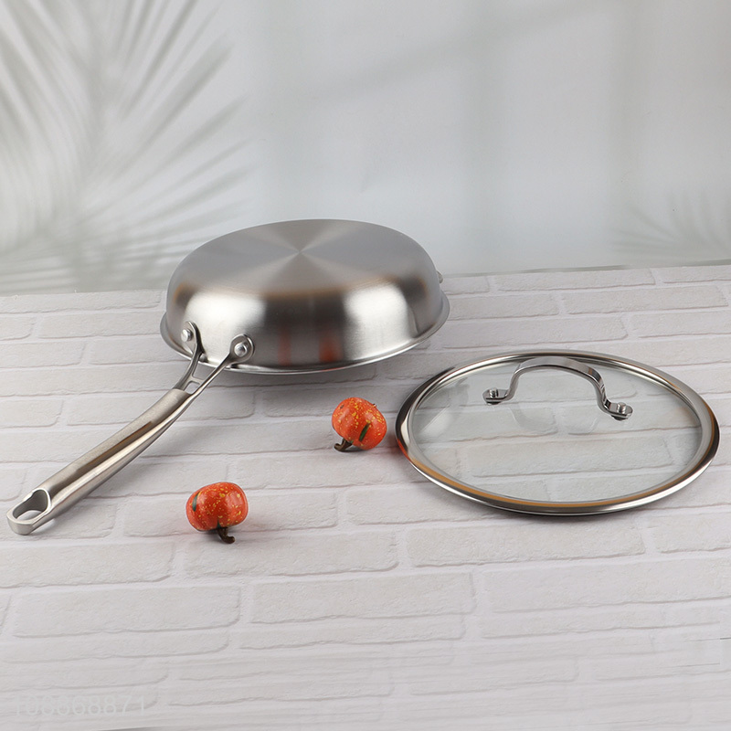 Custom logo stainless steel anti-scratch frying pan skillet with glass lid