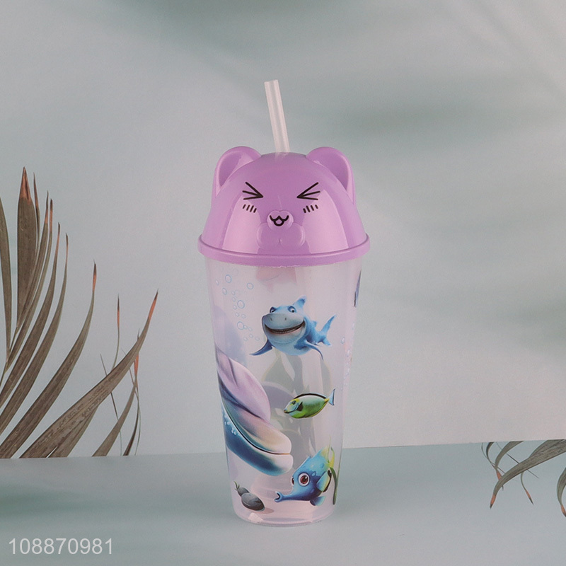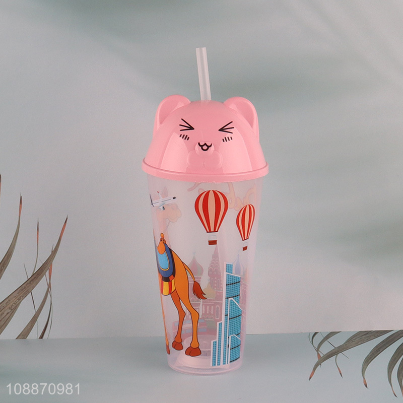 China wholesale cartoon pp water cup drinking cup with straw&lights