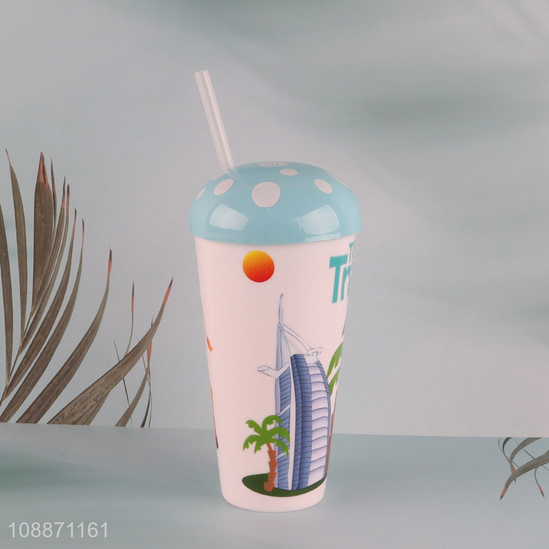 Most popular plastic double wall water cup straw cup for sale