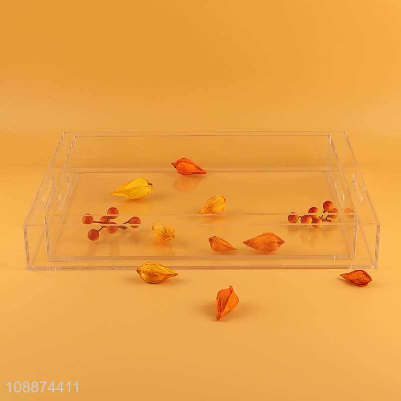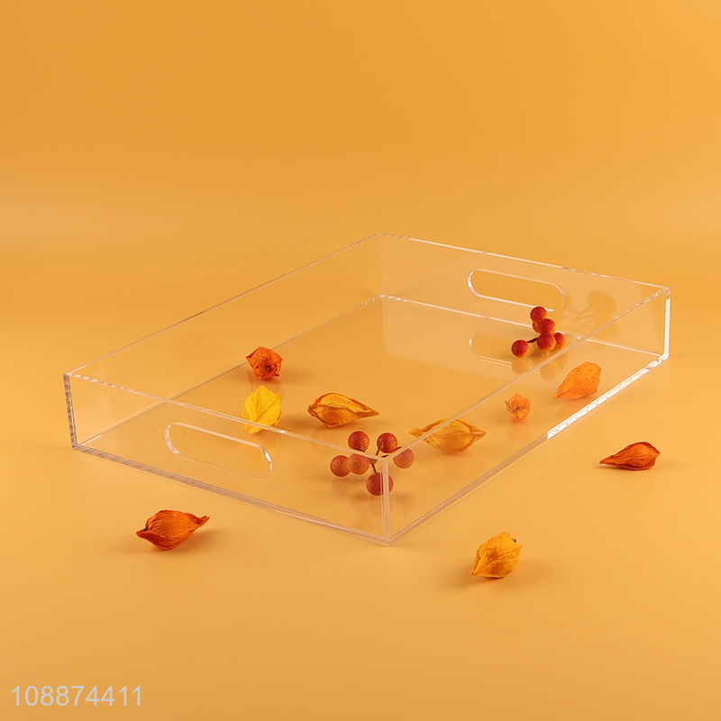 High quality transparent acrylic food serving tray with built-in handles