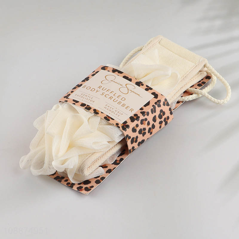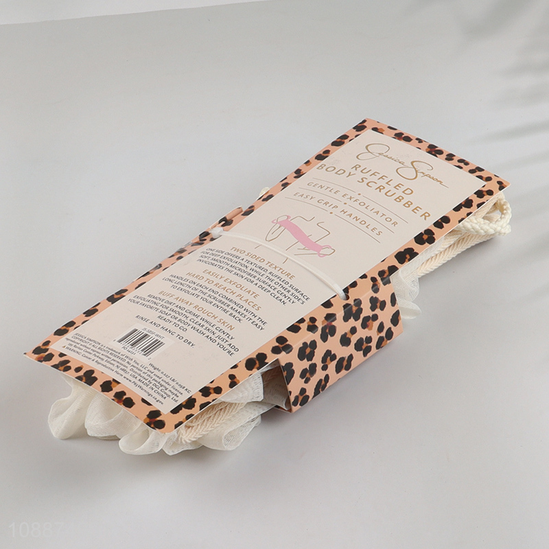 Wholesale double-sided exfoliating loofah back scrubber with handles for shower