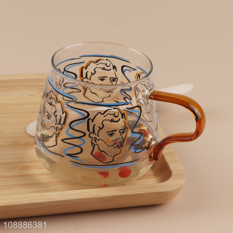 Popular products printed glass water cup drinking cup with handle