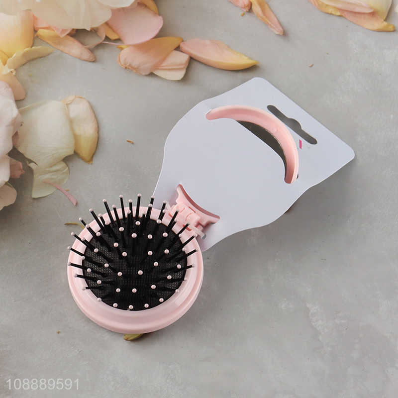 Hot selling round folding pocket hair brush with mirror