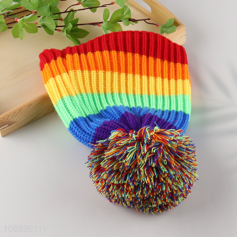 Wholesale women winter hat rainbow knitted beanie hat with pompom