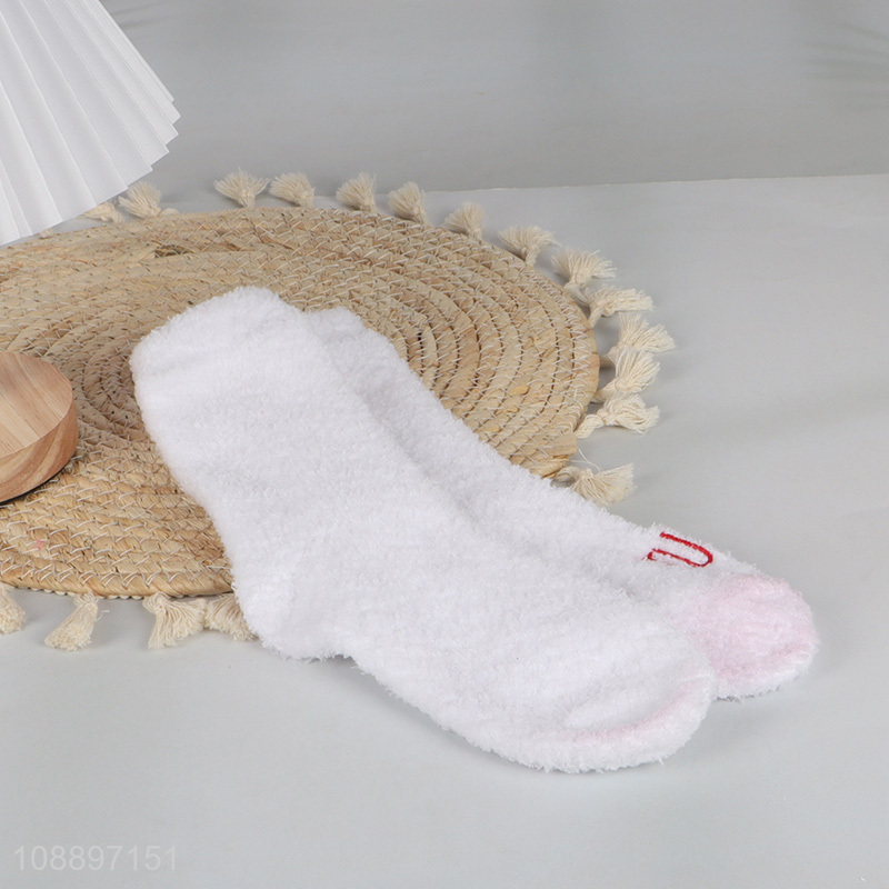 Yiwu market white polyester fuzzy winter socks tube socks