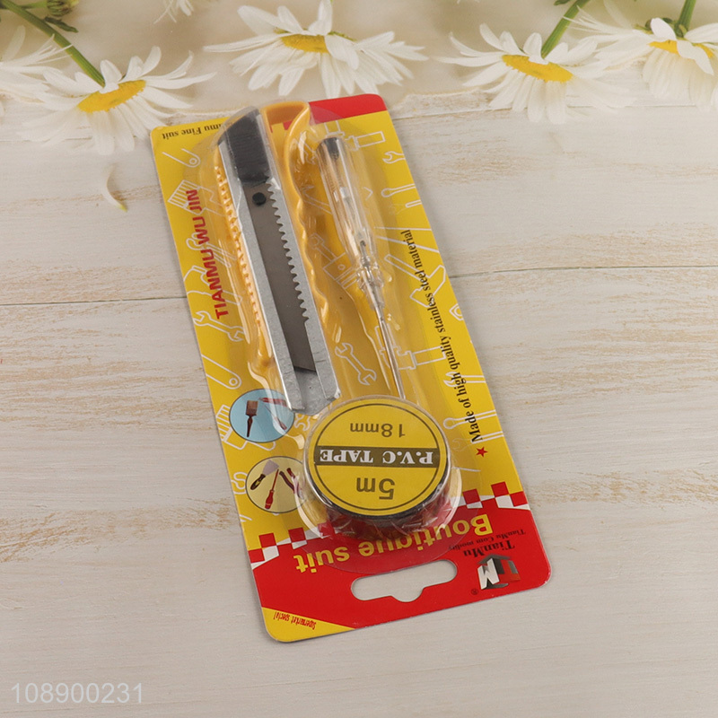 Low price combination tool set tape measure tester pen retractable box cutter