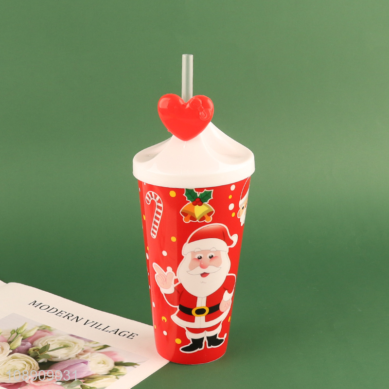 Hot Sale 500ml Reusable Christmas Plastic Cup with Lid & Straw