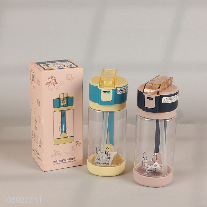 New Product Portable Sports Water Bottle with Flip Straw & Handle