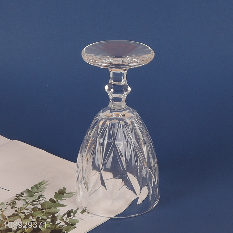 New arrival clear vintage embossed glass goblet footed wine glasses