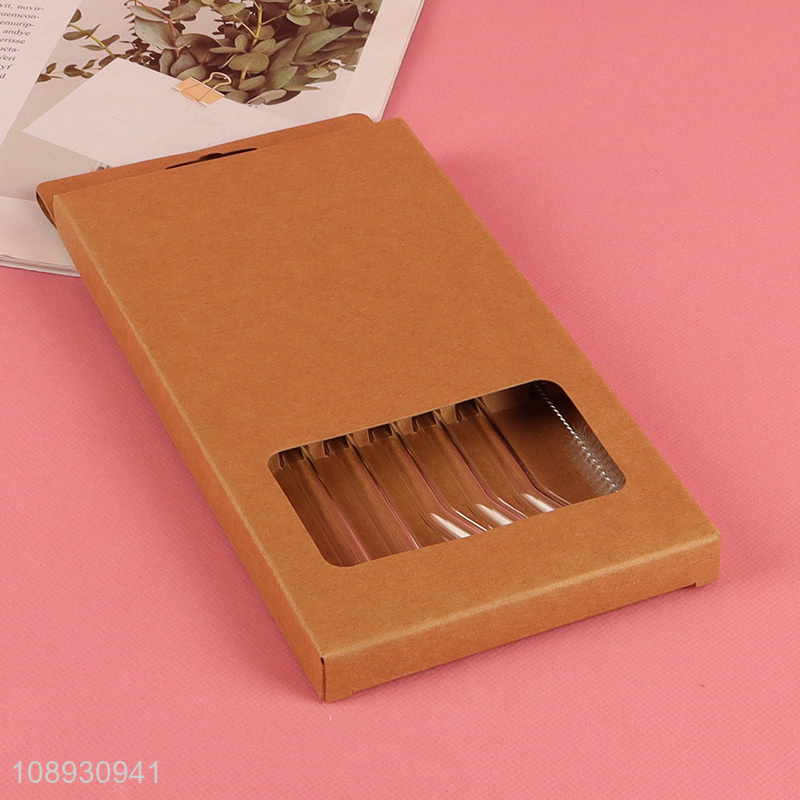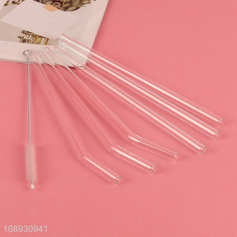 Wholesale 6+1 Clear Bent Straight Glass Straws with Cleaning Brush