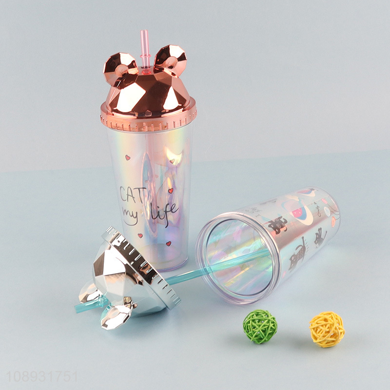 Popular products cartoon printed plastic water cup drinking cup with straw