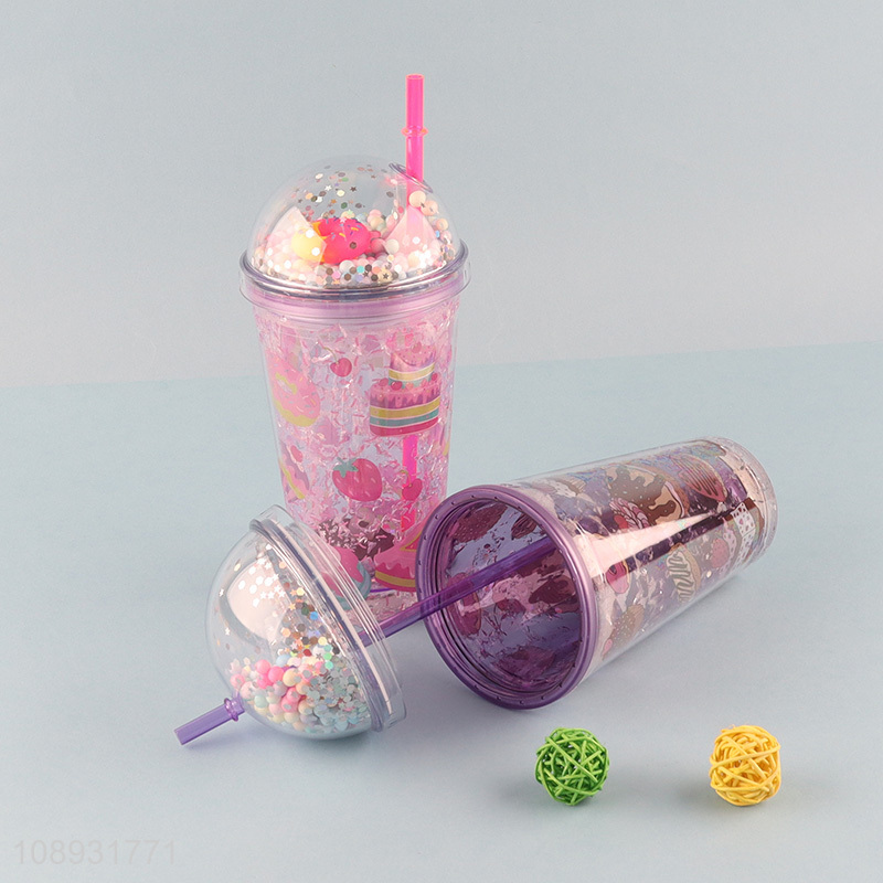 Best selling cartoon plastic straw water cup with light
