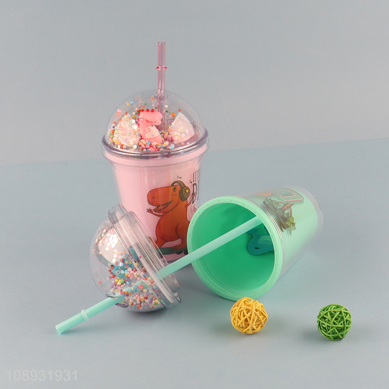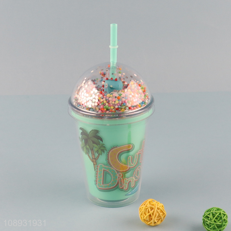 Factory price cartoon dinosaur water cup with straw and lid