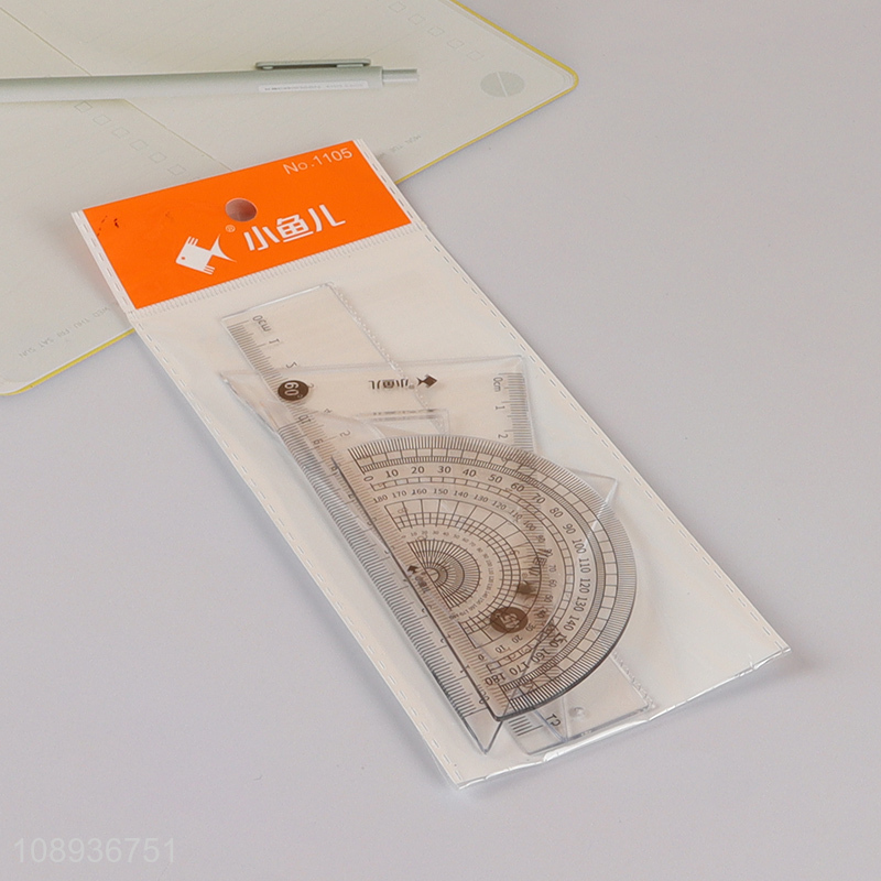 Factory Price 4 Pieces Geometry Plastic Ruler Set Measuring Tool Set