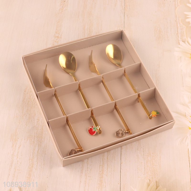 Low price 4pcs golden tableware fork and spoon set for sale