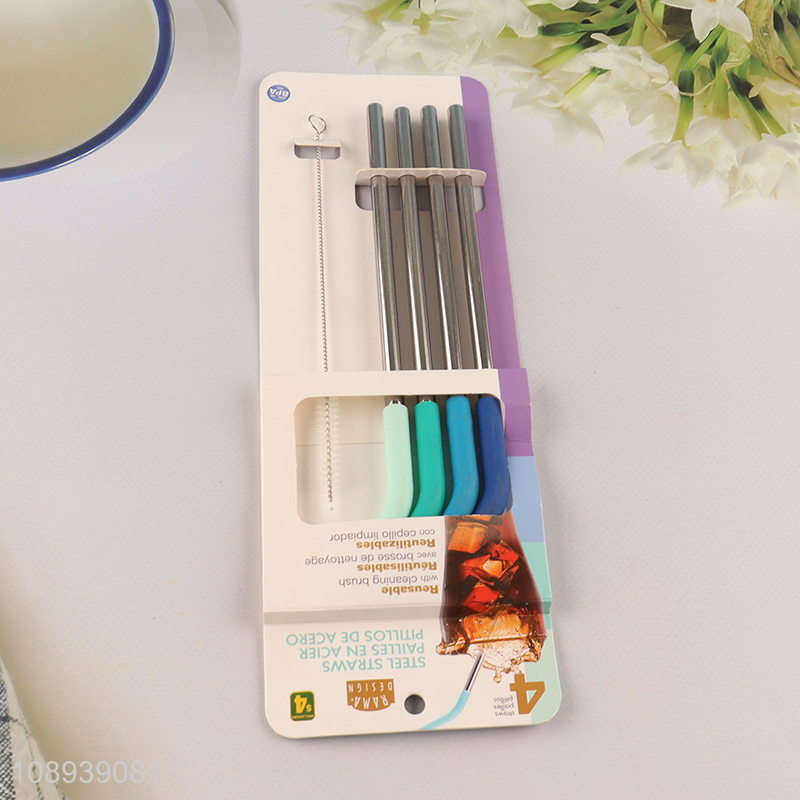 New style 4pcs reusable stainless steel drinking straw set