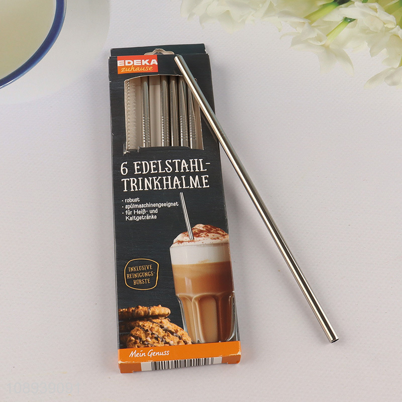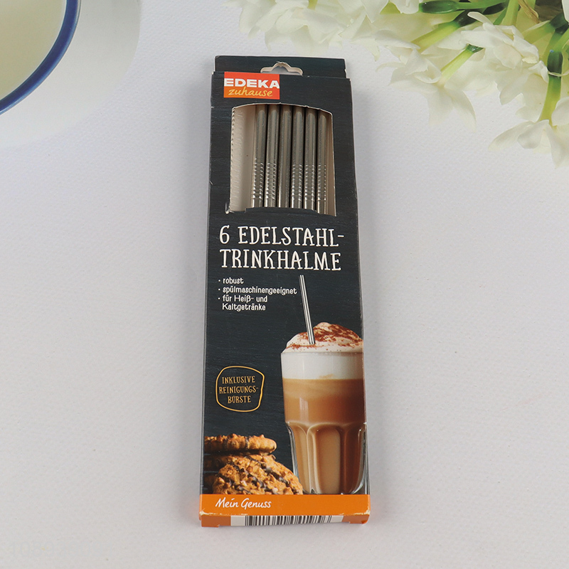 Best price 6pcs reusable stainless steel coffee juice drinking straw