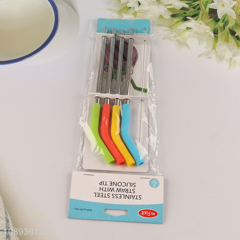 Popular products 4pcs stainless steel drinking straw with silicone tip