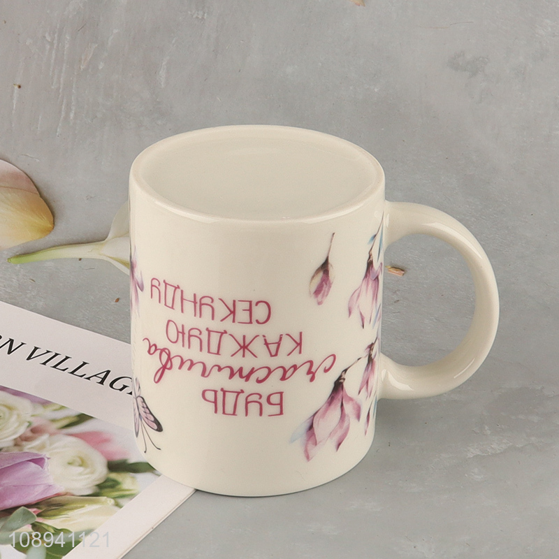 Low price butterfly printed ceramic water cup with handle
