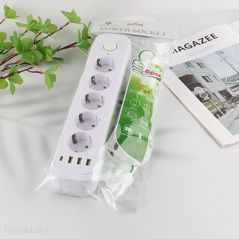 Online Wholesale EU Extension Socket Power Strip with 3 USB Charging Ports
