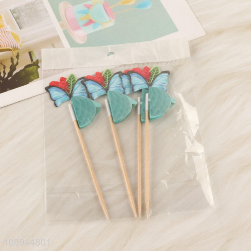 Hot Selling 4PCS Butterfly Cupcake Toppers Cupcake Toothpicks