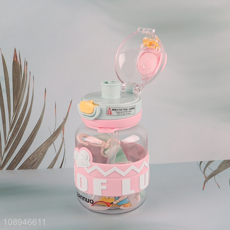 Good Quality 600ML Kids Plastic Water Bottle with Straw & Shoulder Stap