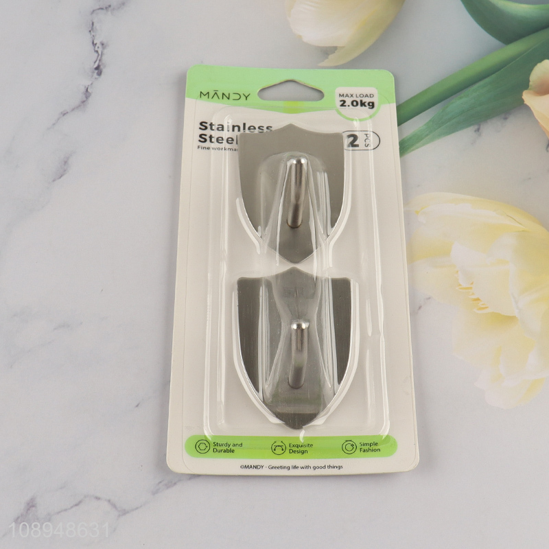 China Imports 2PCS Stainless Steel Sticky Hooks Adhesive Towel Hooks