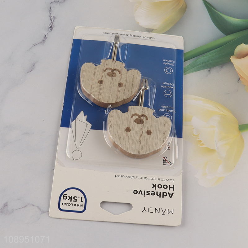 Wholesale 2PCS Dog Shape Wooden Sticky Hooks Adhesive Towel Hooks