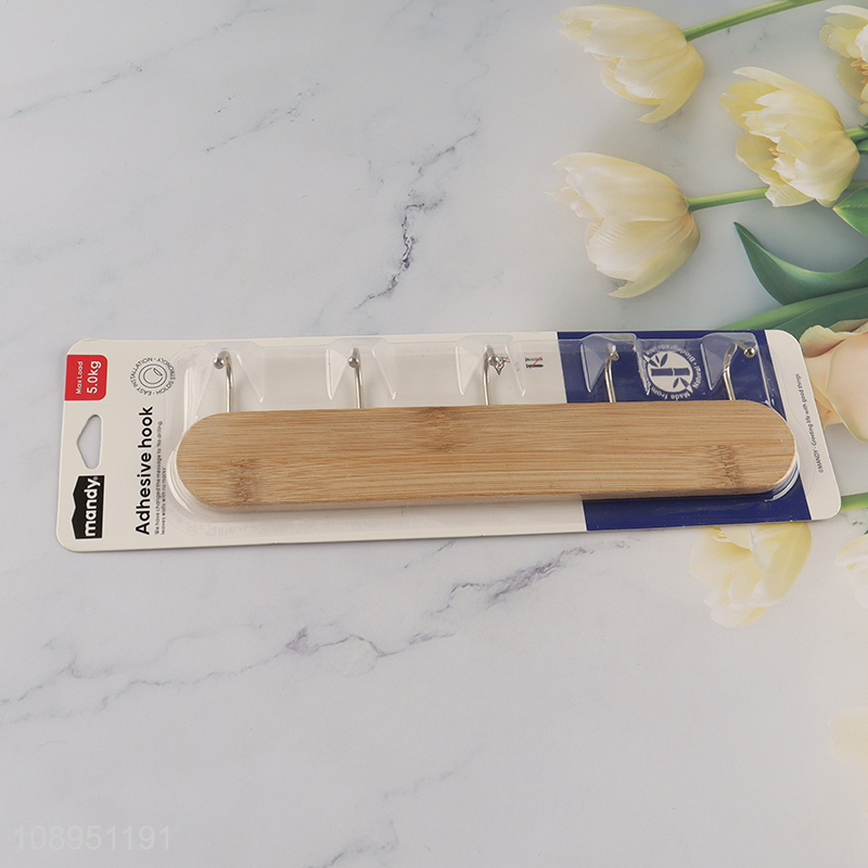 High Quality Bamboo Wall Hooks Adhesive Towel Rack with 5 Hooks