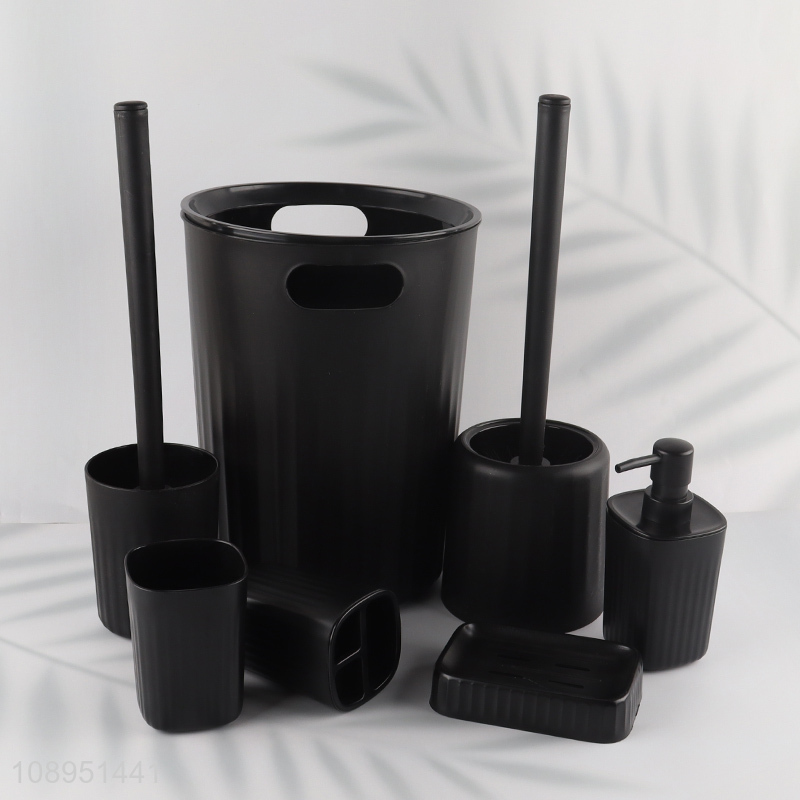 Factory Price 7PCS Plastic Bathroom Accessories Set with Trash Can