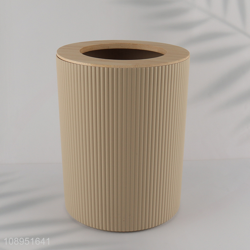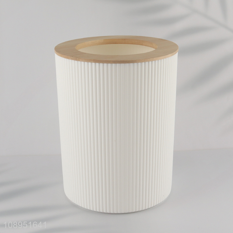 Good Quality Plastic Trash Can Waste Bin with Bamboo Pressure Ring