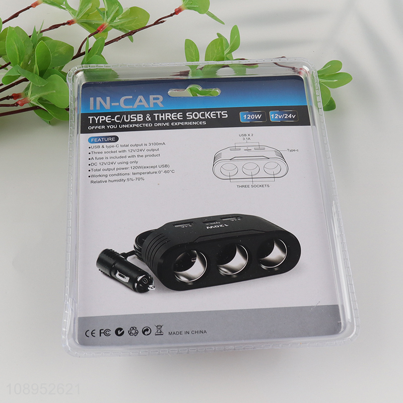 High Quality 120W 3-Socket Cigarette Lighter Splitter Car Charger Adapter
