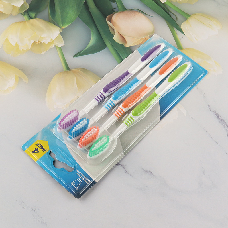 New product 4pcs multicolor soft bristle adult toothbrush set for sale