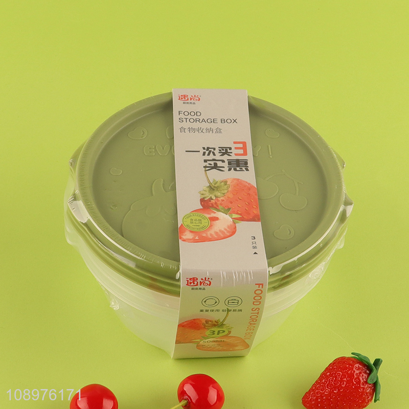 Good price round 3pcs sealed food container storage box set for kitchen