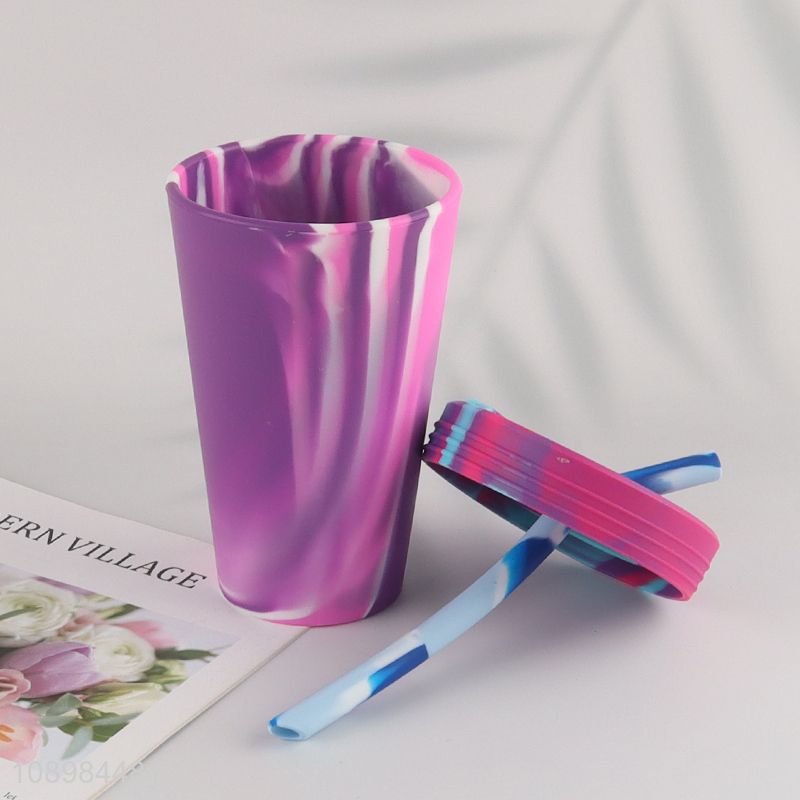 China wholesale silicone water cup drinking cup with straw and lid