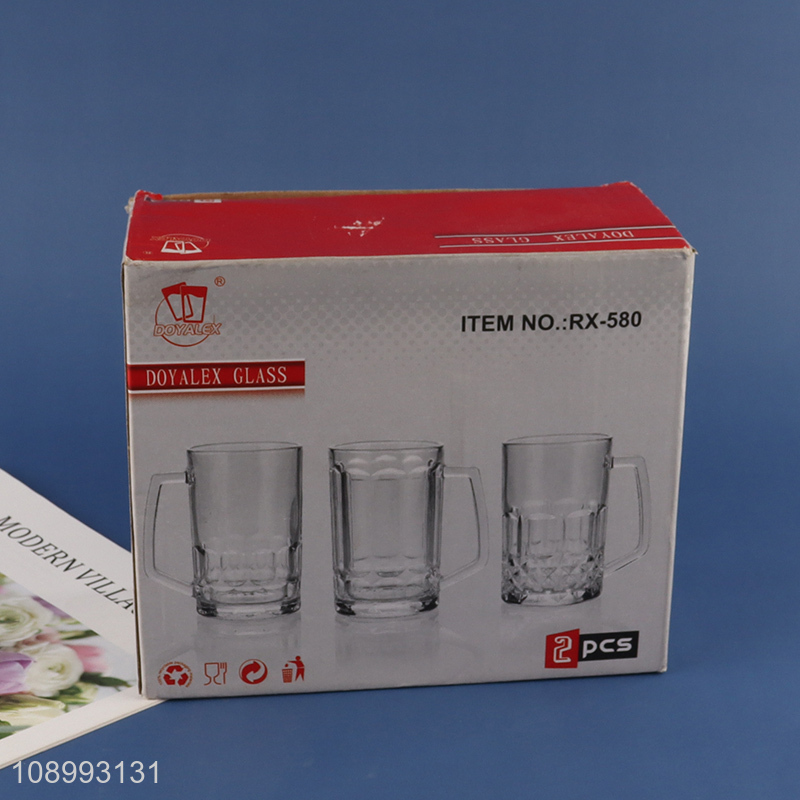 Good price 2pcs unbreakable glass water cup drinking cup with handle
