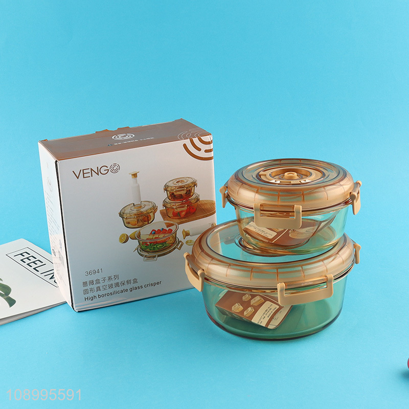 Popular products round vacuum glass crisper glass food container