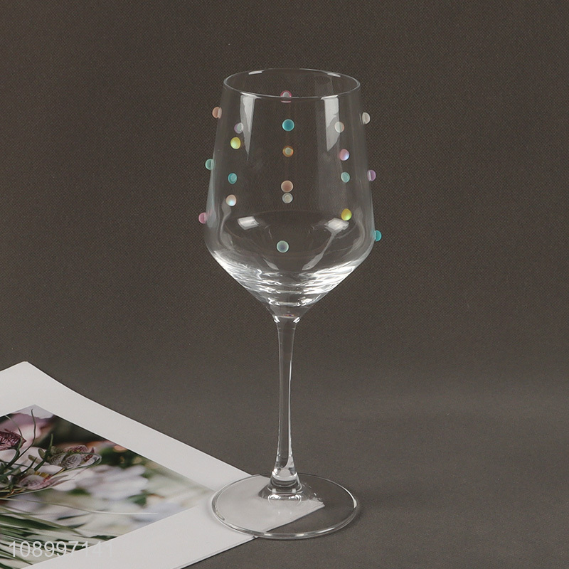Wholesale Colorful Dots Long Stem Wine Glasses Goblet for Wedding Birthday