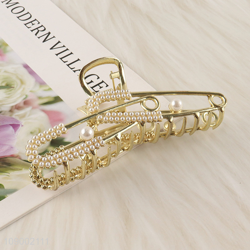 Good Quality Gold Metal Hair Claw Clips Large Pearl Hair Clips
