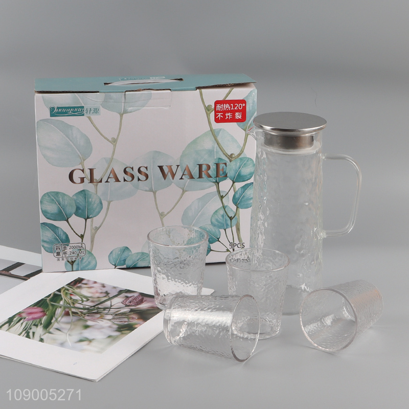 Good quality 5pcs heat-resistant glass water cup water jug set