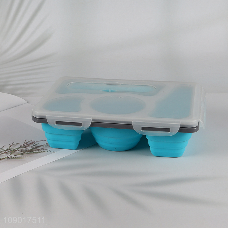 China factory portable folding silicone sealed lunch box with spoon