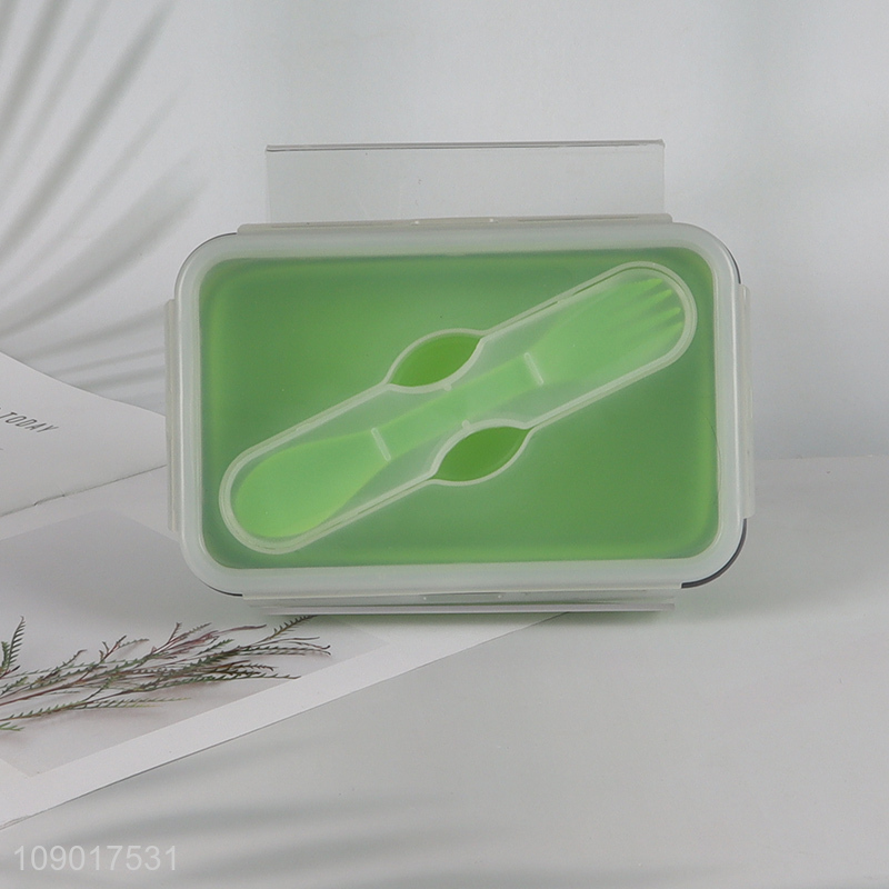 Top products portable folding silicone sealed lunch box with tableware