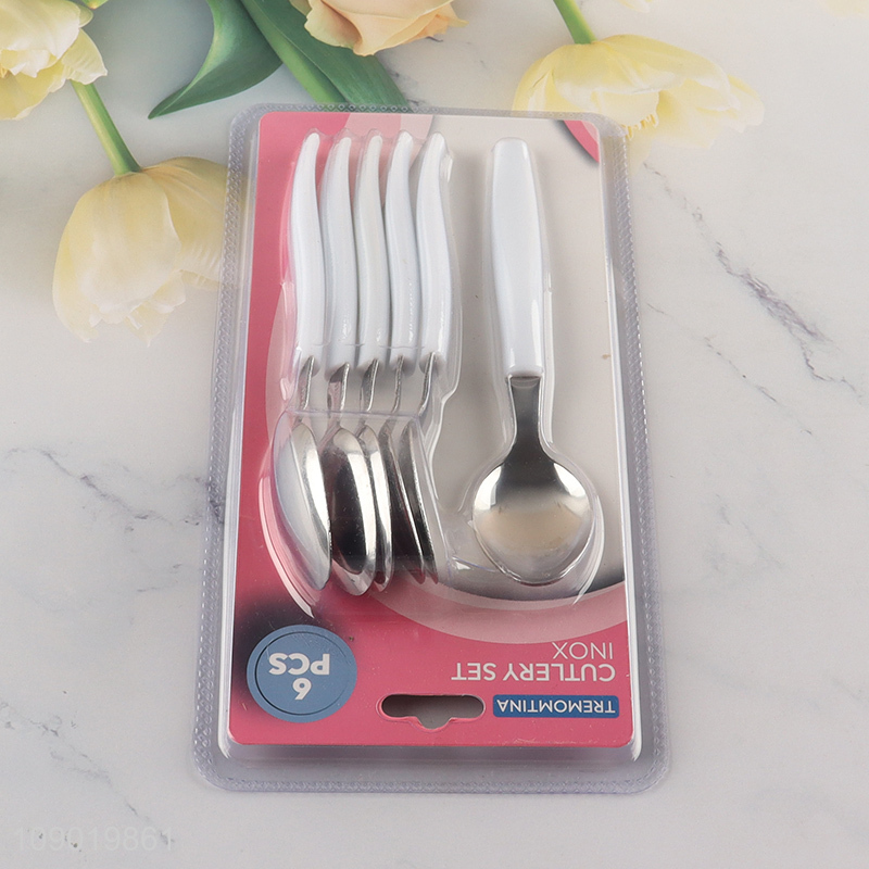 China Imports 6PCS Tea Spoons Plastic Handle Stainless Steel Tea Spoons
