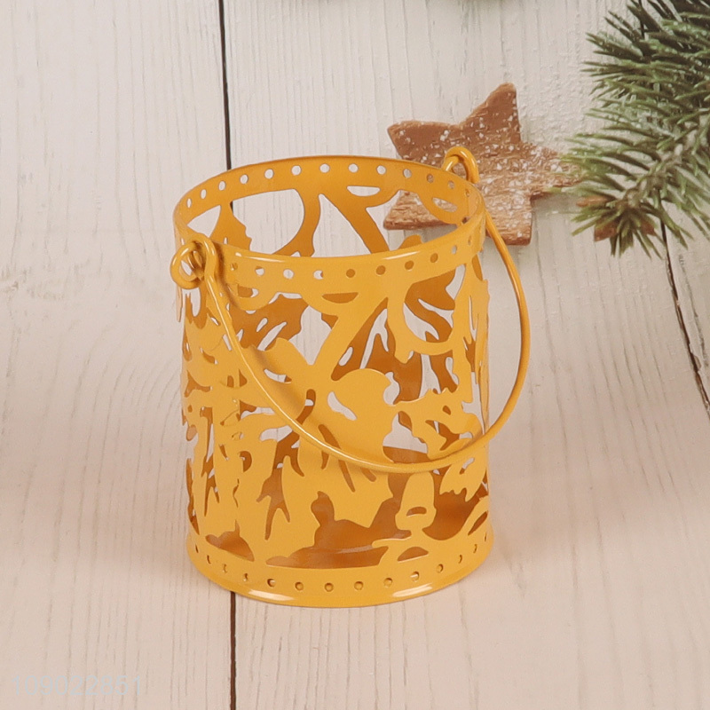 Hot products home decor hollow hanging metal candle holder with handle