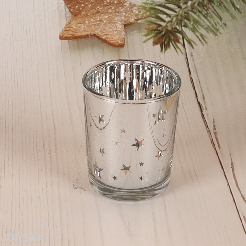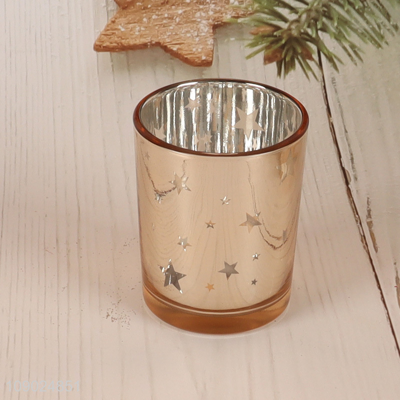 New arrival multicolor shiny plated star home decor glass candle holder